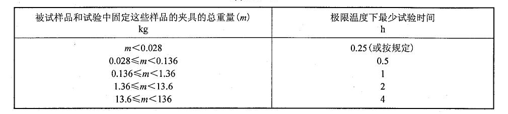 3、上一步结束后,需在5min中内将样品从高温箱再移至低温箱,第一步低温箱温度为-55℃的,高温箱温度可设定为85℃(可存在0~-3℃的误差),第一步低温箱温度为-65℃,高温箱温度可从125℃(可存在0~-3℃的误差)、200℃(可存在0~-5℃的误差)、350℃(可存在0~-5℃的误差)、500℃(可存在0~-5℃的误差)、150℃(可存在0~-5℃的误差)中选择检测,检测时间参考下表。